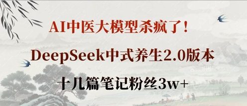AI中医大模型杀疯了!DeepSeek中式养生2.0版本,十几篇笔记粉丝3w+