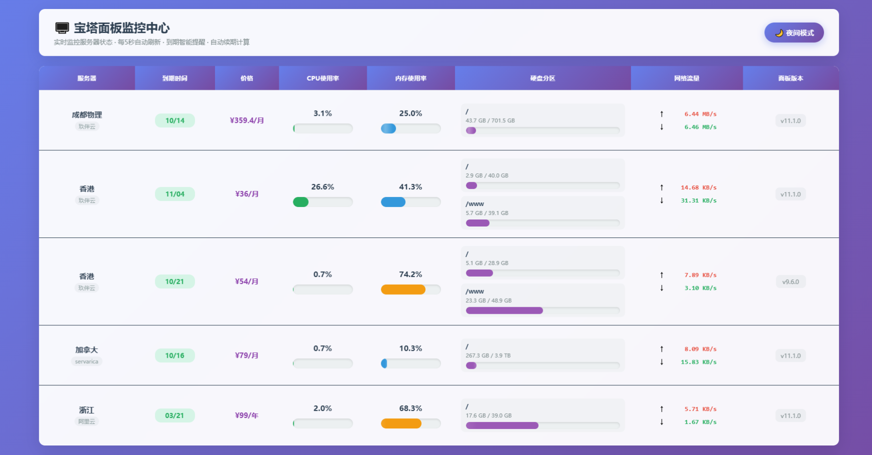 接口使用的宝塔面板api,被监控机器需要安装宝塔面板