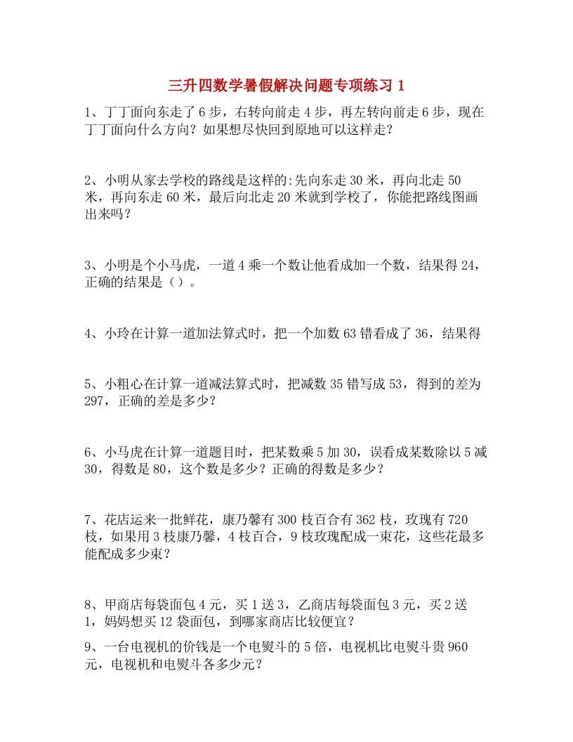 三升四数学暑假解决问题专项练习-四上数学