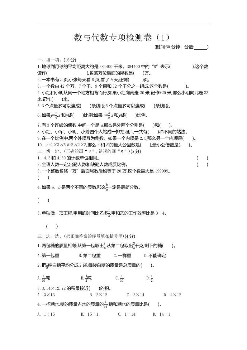 六下青岛63版数学期末数与代数专项检测卷(1)