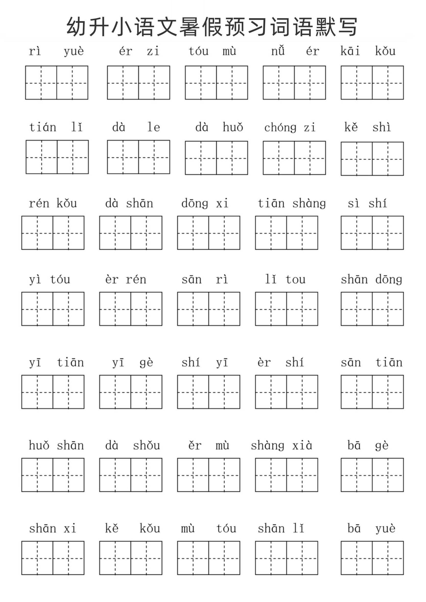 当前位置:首页学科资源语文幼升小语文暑假预习词语默写