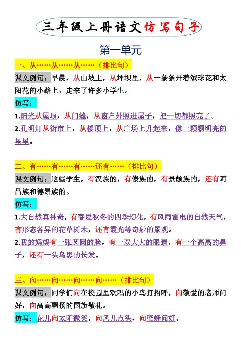 当前位置:首页学科年级三年级三上语文一二单元仿写句子