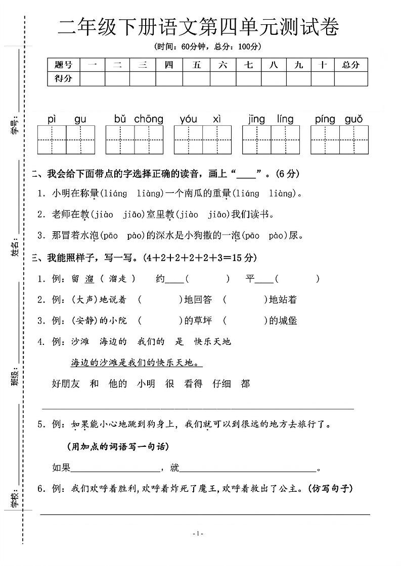 当前位置:首页学科年级二年级二年级下语文第四单元测试卷-2_纯图版