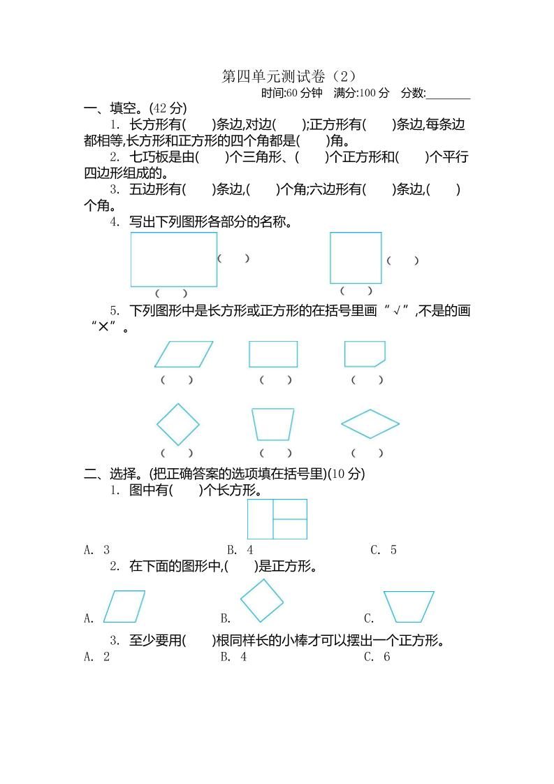 二下青岛版数学第四单元检测卷-1(54制)3页