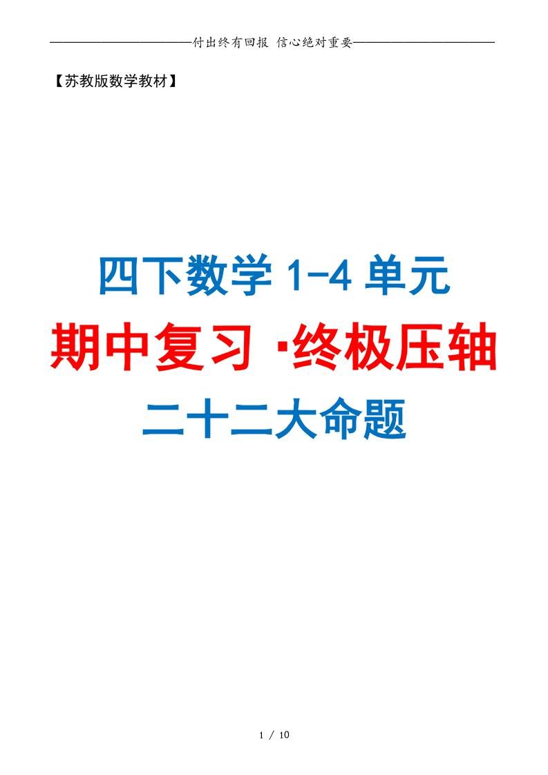四下数学期中复习·终极压轴版(原卷版)苏教版10页