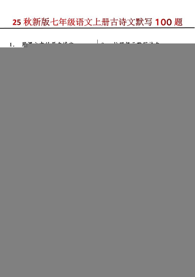 当前位置:首页学科年级七年级【2025秋新版】七年级语文上册古诗文默写100题
