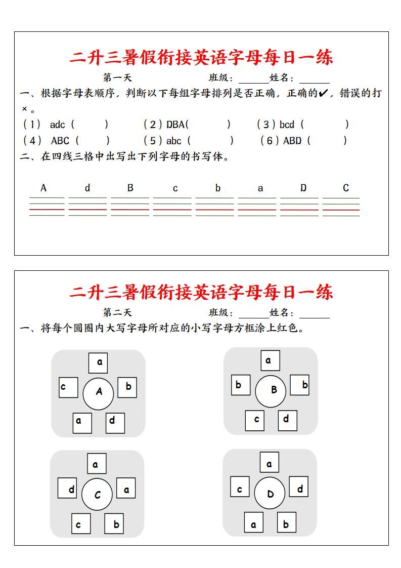 二升三暑假衔接英语字母每日一练二下英语