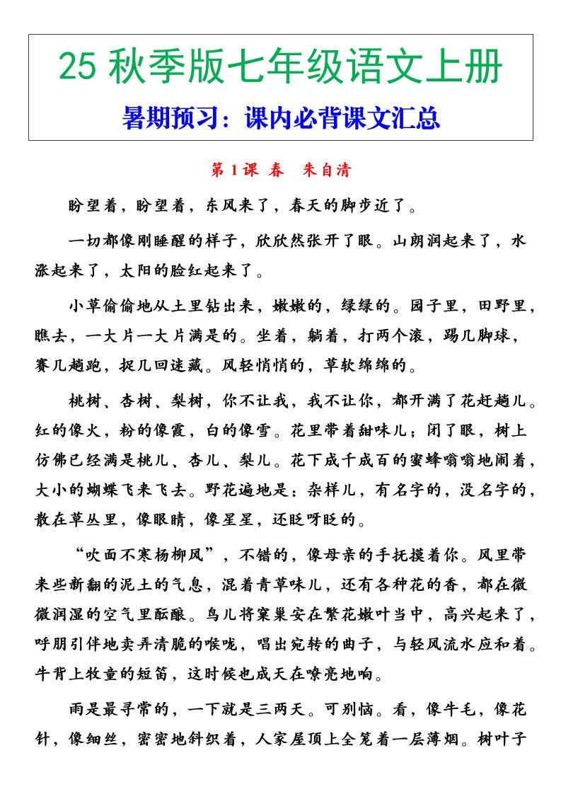 当前位置:首页学科年级七年级【2025秋新版】七年级语文上册必背重点内容