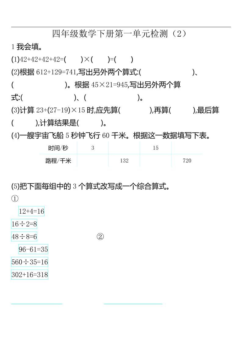 当前位置:首页学科年级四年级四下人教版数学第一单元检测卷-2