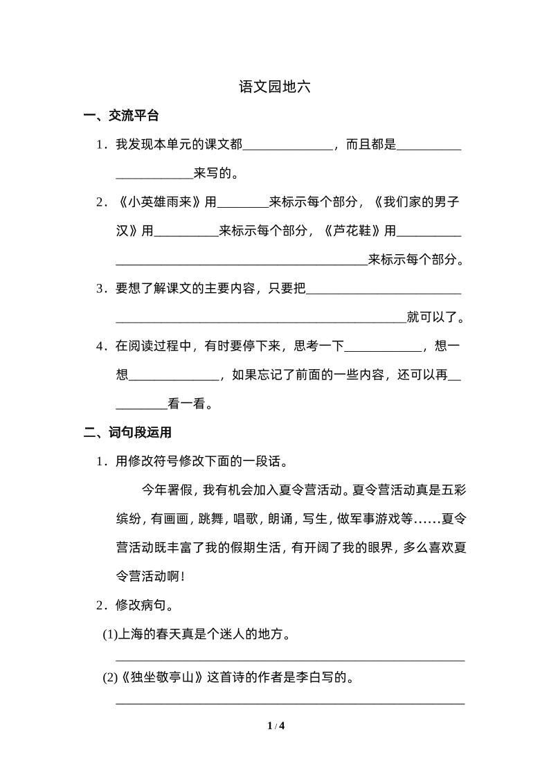 当前位置:首页学科年级四年级四下语文园地六:配套练习