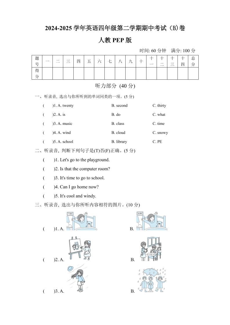 人教版2024-2025学年英语四年级第二学期期中考试(B)卷