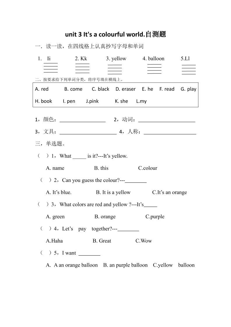 25新【外研三起】三上英语自测题-Unit3lt’sacolourfulworld!自测题(含答案)