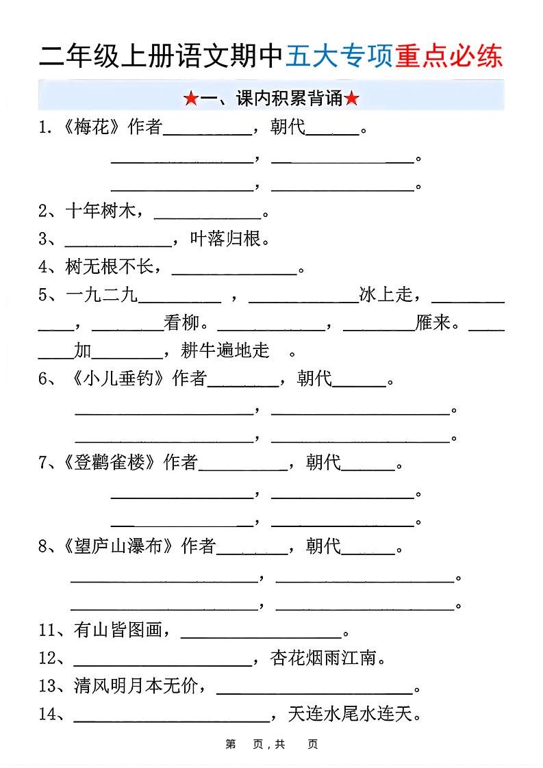 当前位置:首页学科年级二年级新二上语文期中五大专项重点必练(含答案18页)