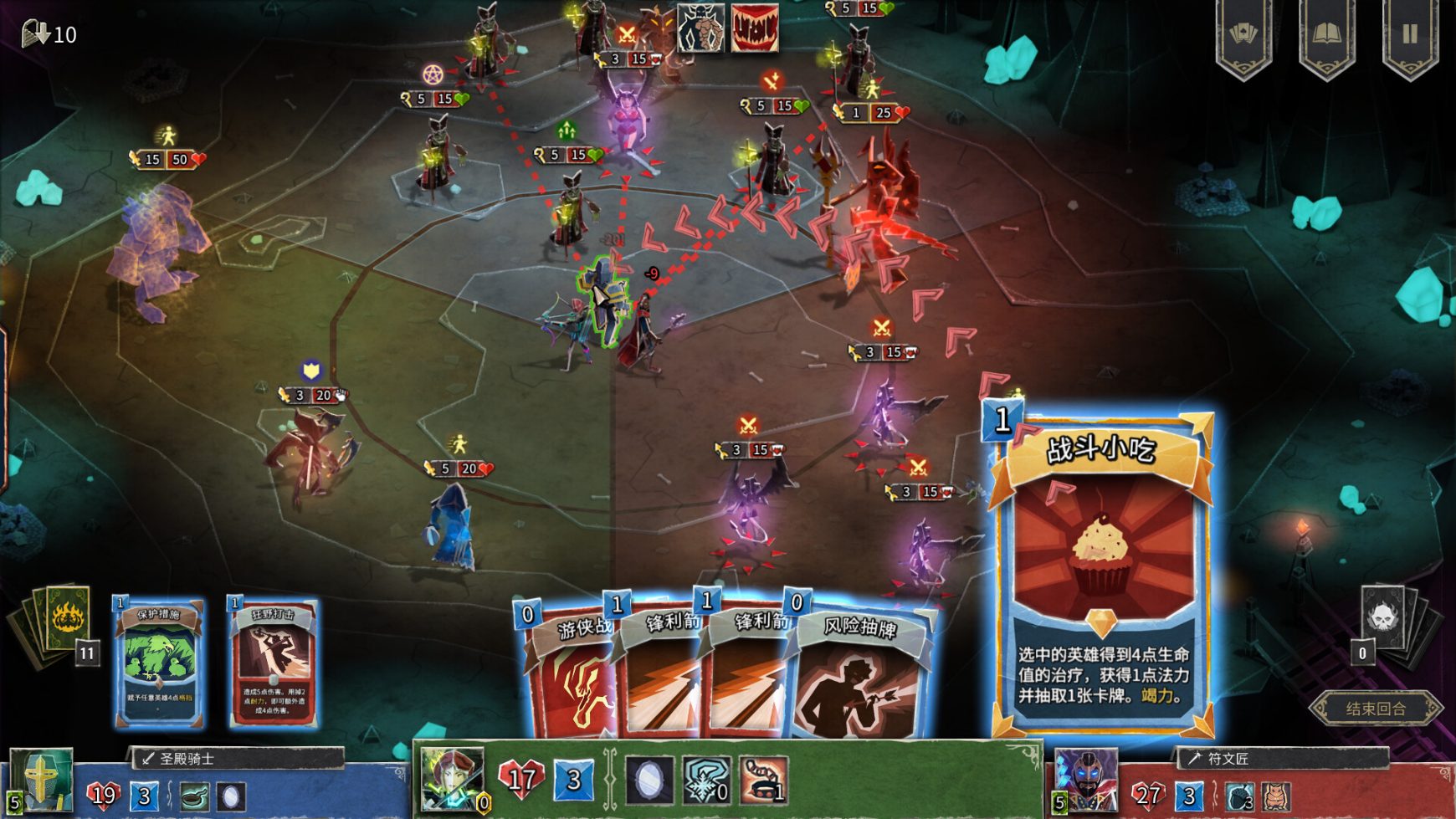 想象你手握一套专属卡组,在随机生成的地牢房间中谨慎前行,每个转角都可能遭遇凶残的恶魔军团。游戏最让人欲罢不能的就是它充满策略性的战斗系统——你需要在有限的行动点内打出最佳组合,是先用位移卡牌调整敌人站位,还是直接发动高伤害的连击?当你在恶魔包围中巧妙走位,用一套完美连招清空战场时,那种运筹帷幄的成就感简直无与伦比!