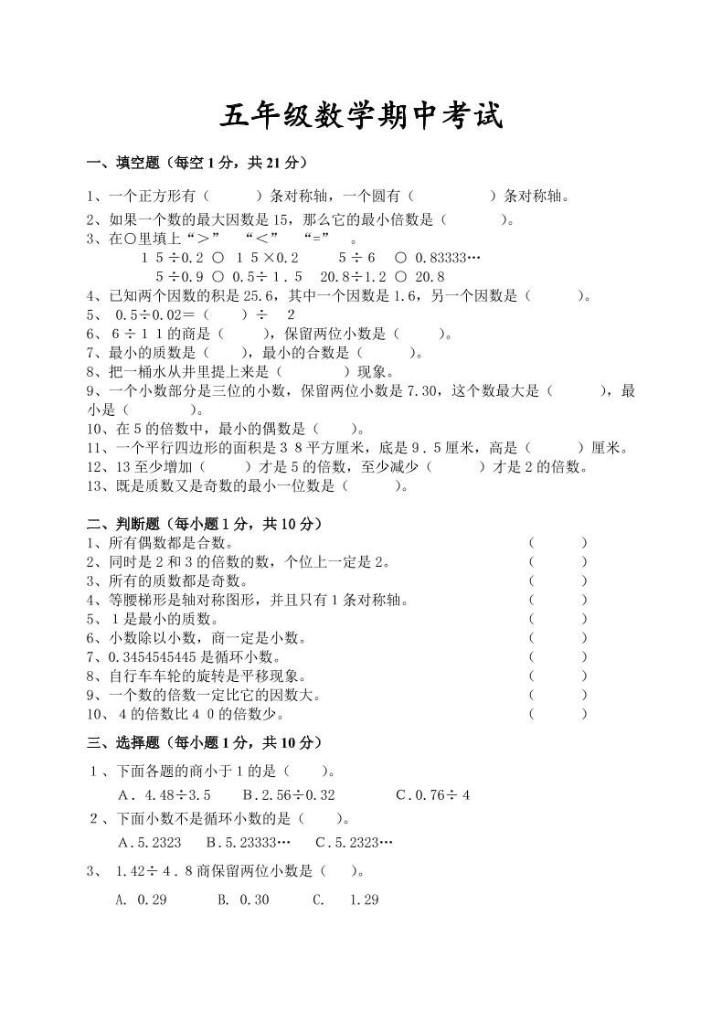 当前位置:首页学科年级五年级五年级上数学期中检测卷4《北师版》