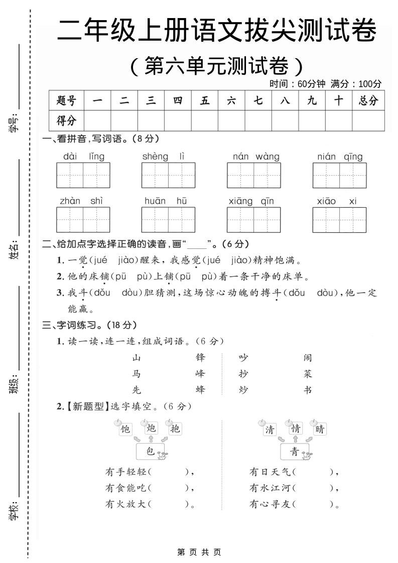 当前位置:首页学科年级二年级二年级上语文第六单元拔尖测试卷2