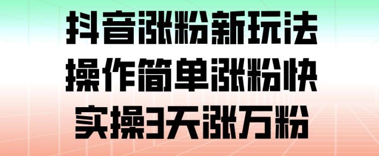 抖音涨粉新玩法,操作简单涨粉快,实操3天涨万粉
