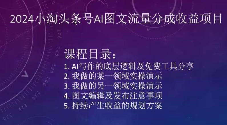 2024小淘头条号AI图文流量分成收益项目