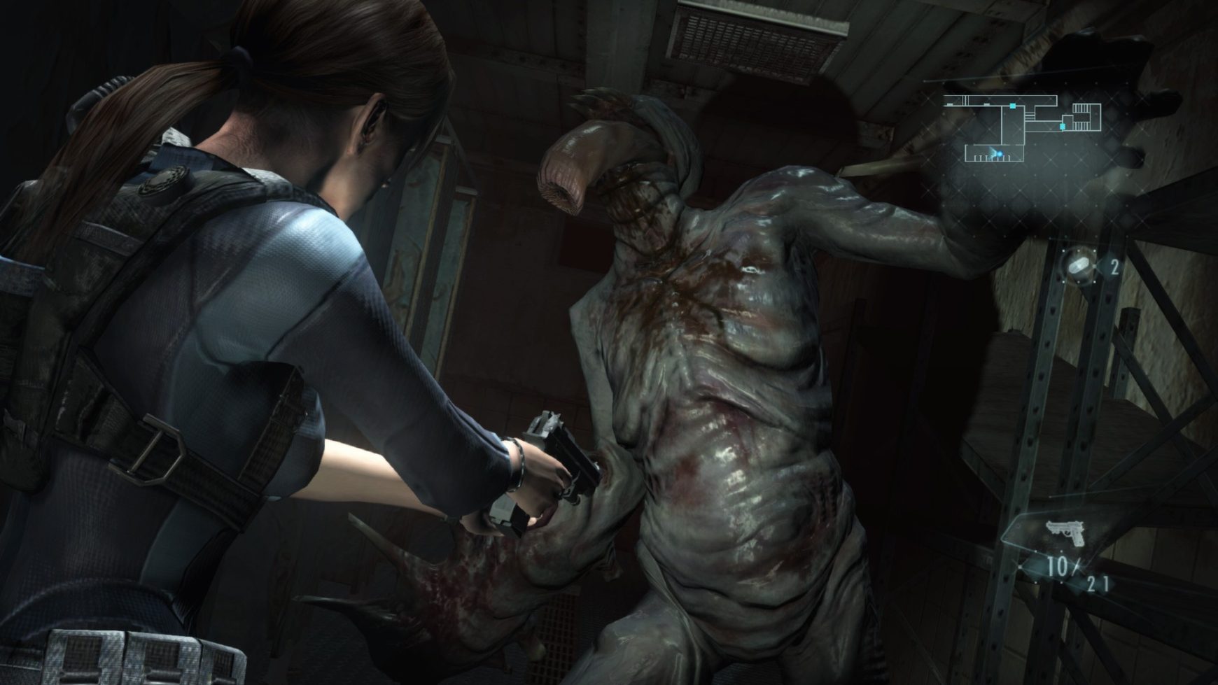 《生化危机:启示录 RESIDENT EVIL REVELATIONS》Switch中文版XCI下载 – 含1.0.1补丁,本作是一款以经典生存恐怖玩法为核心的第三人称射击游戏。故事围绕BSAA特工吉尔与克里斯调查一艘在地中海失踪的幽灵船“女王号”展开。玩家需在幽闭的船舱环境中探索,管理稀缺资源,对抗由“T-深渊”病毒变异的新型怪物。