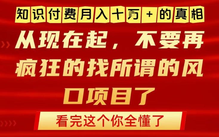 知识付费月入10个W的真相,做网创项目这一个就够了,不要再疯狂的找所谓的风口项目【揭秘】